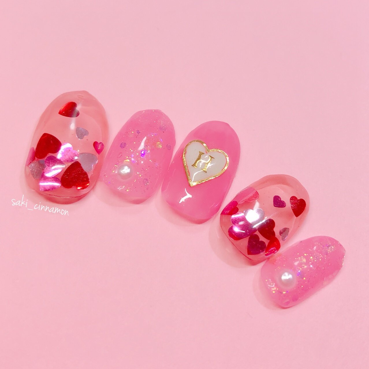 ホログラム パール ハート クリア ピンク Saki Cinnamonのネイルデザイン No ネイルブック